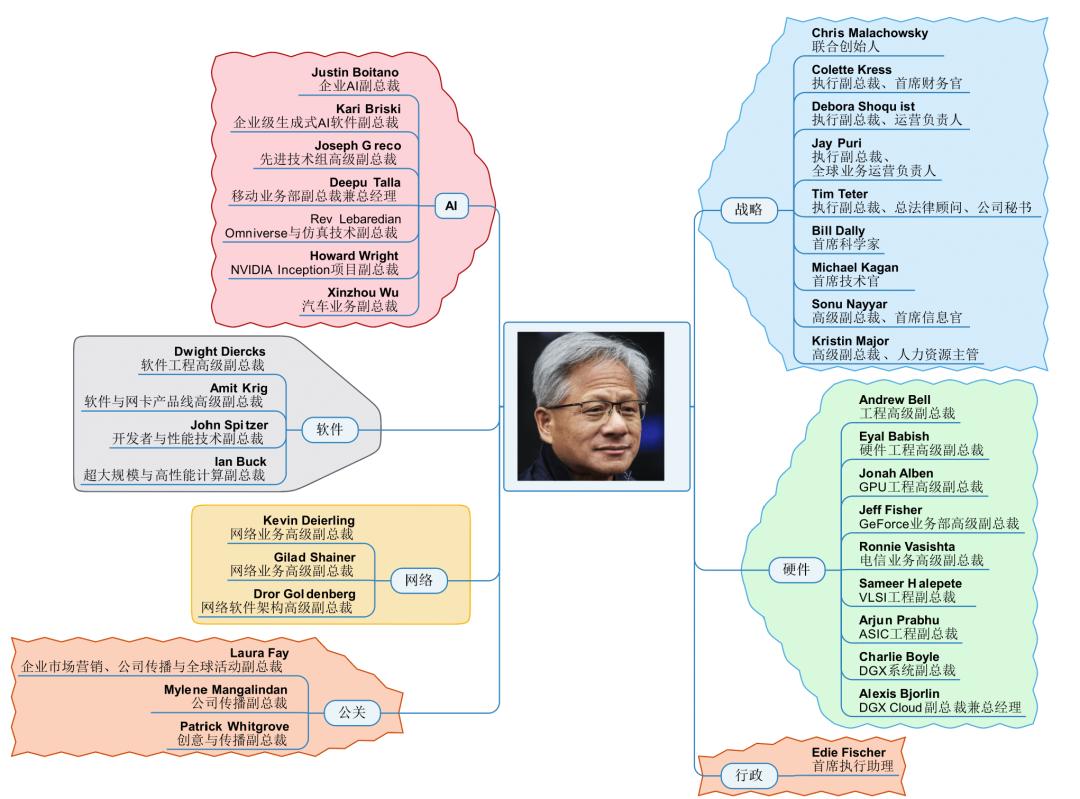 战略、硬件、软件、AI、公关、网络,以及老黄的一位执行助理。