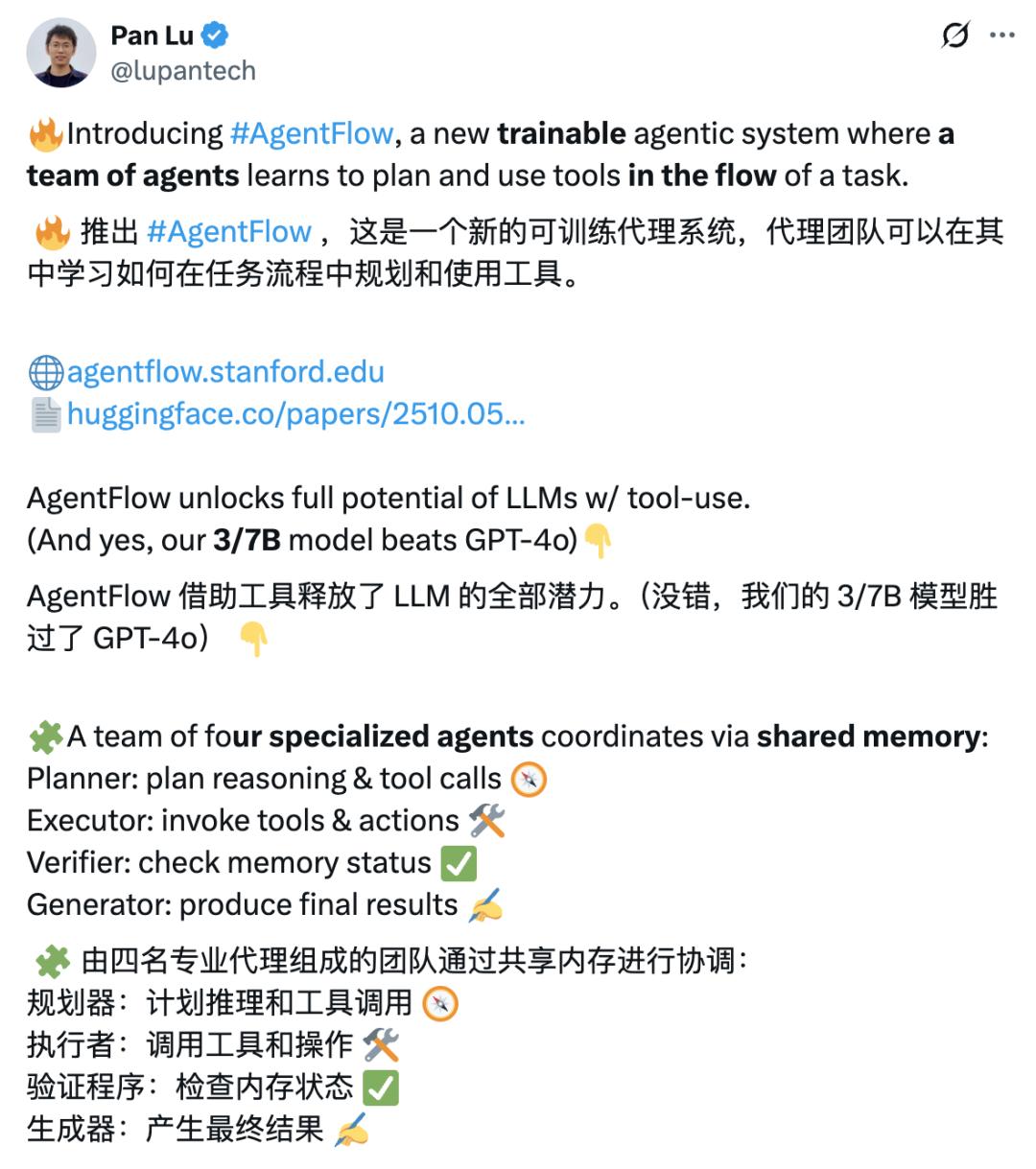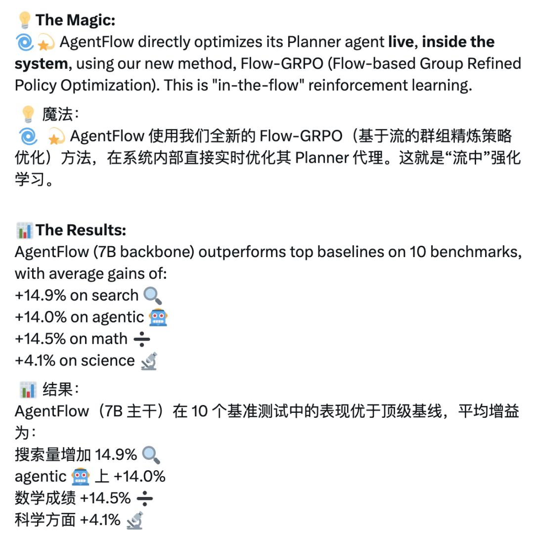 AgentFlow至少让我们看到:Agentic AI的发展不必完全依赖模型规模的堆砌,系统架构创新+高效训练方法可能是更值得探索的方向。