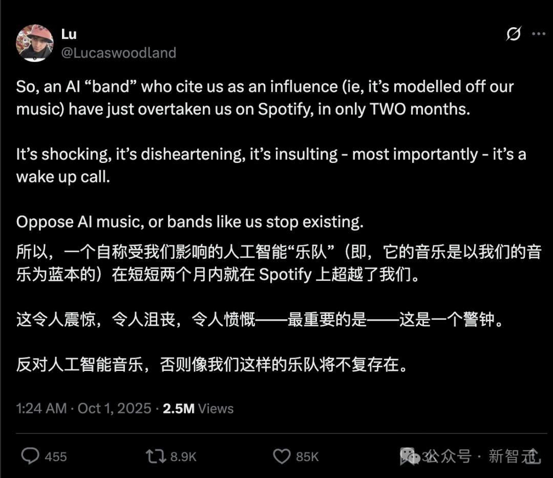 他认为这种A-Pop潮流,对于那些「辛勤耕耘多年,精进技艺,并将灵魂倾注于每一个节拍」的人类艺术家来说,就好比「狠狠扇了一巴掌」。