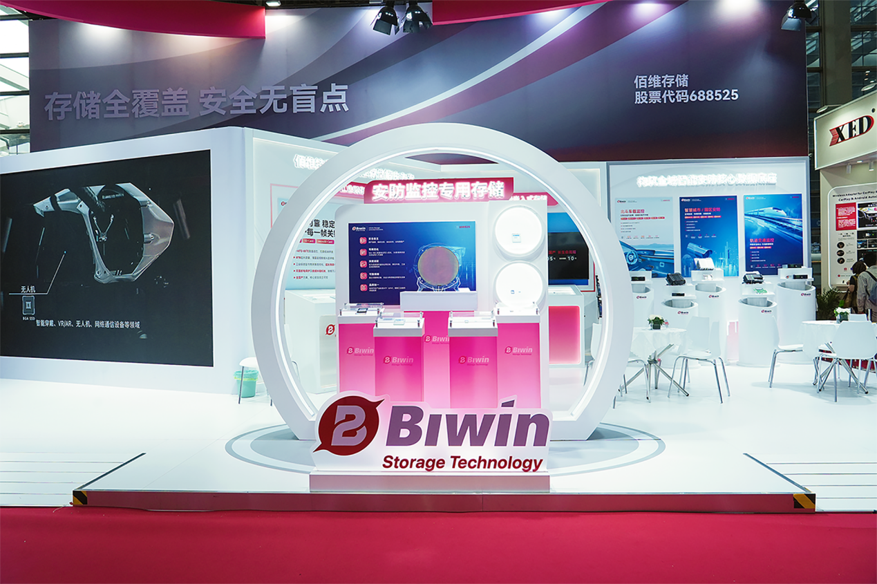 佰维存储以“存储全覆盖,安全无盲点”为核心展示主题,携工车规全系存储产品矩阵亮相,系统性地呈现了佰维存储在安防监控、车载终端、轨道交通等典型场景中的应用成果,以全覆盖、高可靠、高稳定、可追溯的存储解决方案,助力智能安防的全域升级。