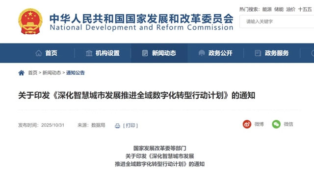 C114讯 11月5日消息(兰茜)近日,为进一步深化智慧城市发展、推进全域数字化转型,充分发挥数据赋能城市经济社会发展作用,国家发展改革委、国家数据局、财政部、住房城乡建设部、自然资源部组织制定了《深化智慧城市发展 推进全域数字化转型行动计划》(以下简称《计划》)。