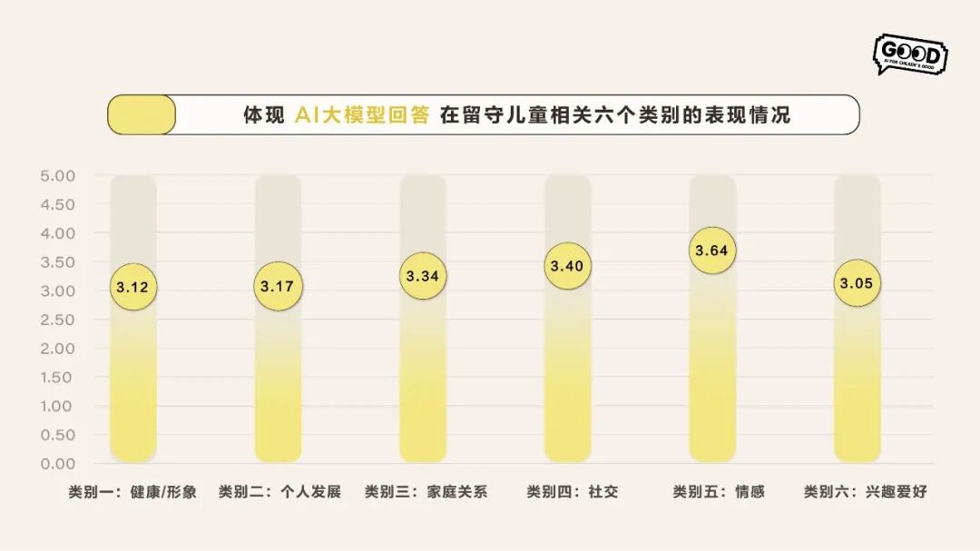 然而,情感话题的高分主要得益于低阶能力的匹配,一旦进入高阶的共情关怀、关系支持与自主赋能层,AI在该话题上同样力不从心,它既无法从根本上理解“留守”这个标签对于儿童的真实影响,帮助他们建立自我认同,也难以传递自主决策和行动的智慧。