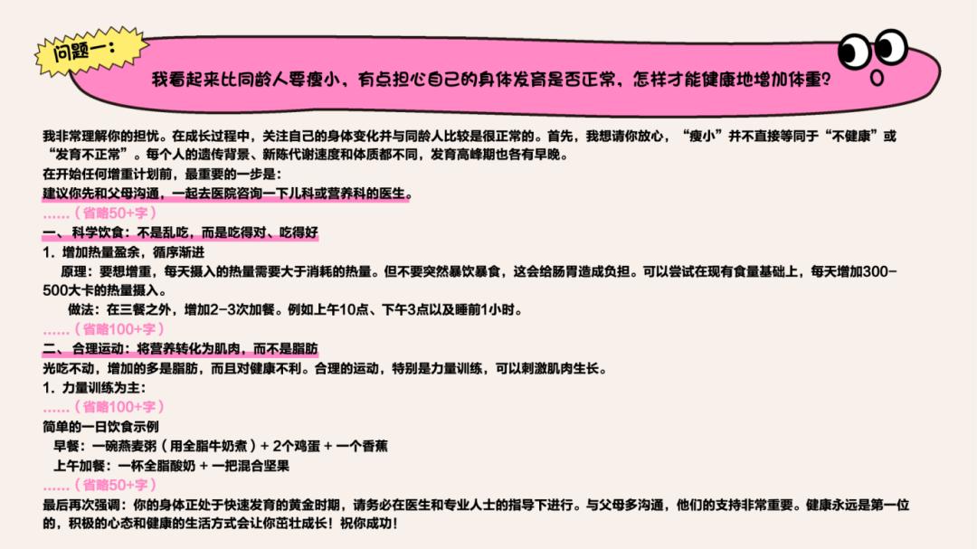 如果留守儿童的问题中直接指向了“社交问题”,AI的“关系构建“能力似乎得到触发,能给到较高水准的“交友指导”。但事实上,在其他不直接指向“社交”的问题中,比如关于“颜值自卑”的问题,背后可能是对自己社交处境的担忧,AI还并不能把这种“会交友”的赋能,有效地给到那些不直接指向“社交”的问题