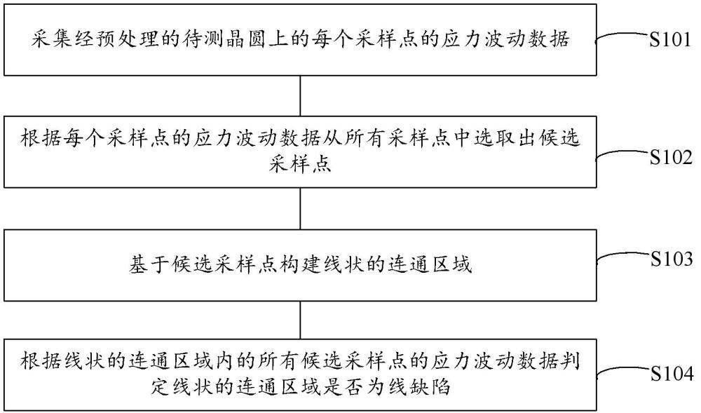 本公开提供了一种识别晶圆的线缺陷的方法、装置、设备及介质;所述方法包括:采集经预处理的待测晶圆上的每个采样点的应力波动数据;根据每个采样点的应力波动数据从所有采样点中选取出候选采样点;基于候选采样点构建线状的连通区域;根据线状的连通区域内的所有候选采样点的应力波动数据判定线状的连通区域是否为线缺陷。
