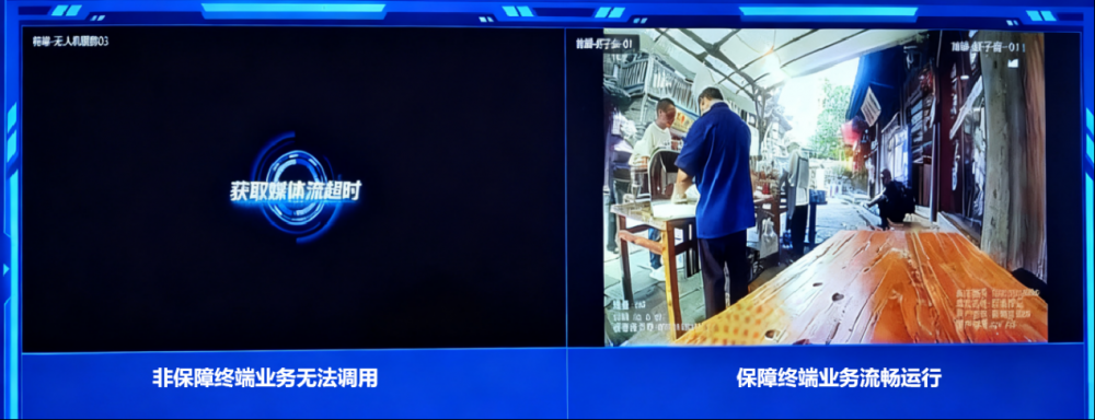 业务可用性达标:保障终端视频流实时同步,画面清晰度与流畅度满足安保指挥需求,实现关键业务“零中断”,而未保障终端则频繁出现视频画面卡顿、时延滞后及回传调用失败问题。