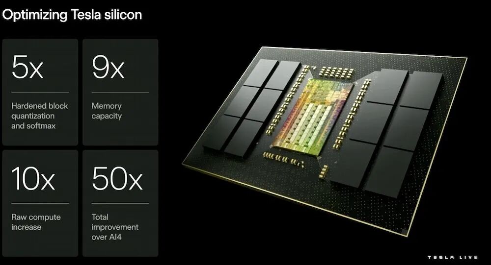▲AI 5芯片整体性能将比AI 4提升50倍