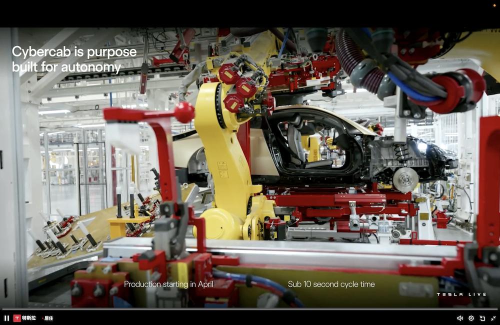 ▲特斯拉要将Cybercab生产周期缩短到10秒