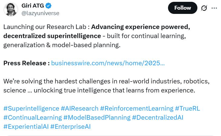 https://www.businesswire.com/news/home/20251105563930/en/ExperienceFlow.AI-Announces-the-Launch-of-Its-Research-Laboratory-to-Advance-Experience-powered-Decentralized-Superintelligence