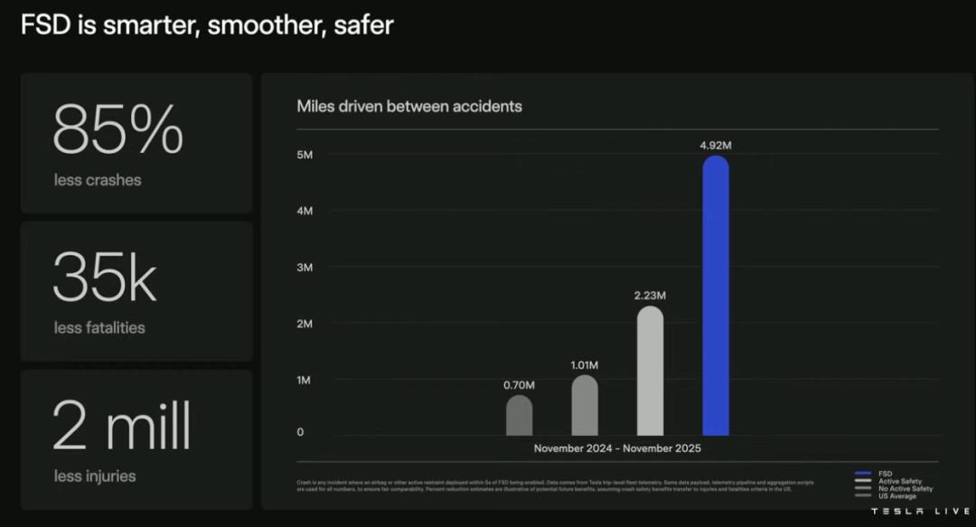 马斯克的节奏非常清晰:稳住把控权,兑现旧承诺,新故事起飞。FSD 已经跑在多个国家,中国市场也在等待最后审批,「希望能够在 2 月或者 3 月左右能够完全获得批准」;Robotaxi 计划 2026 年量产,打造低至几毛钱每公里的运营成本;而 Optimus 则被他称为「有史以来最伟大的产品」,将会加速量产,目标是生产百亿台,要改变世界经济结构。