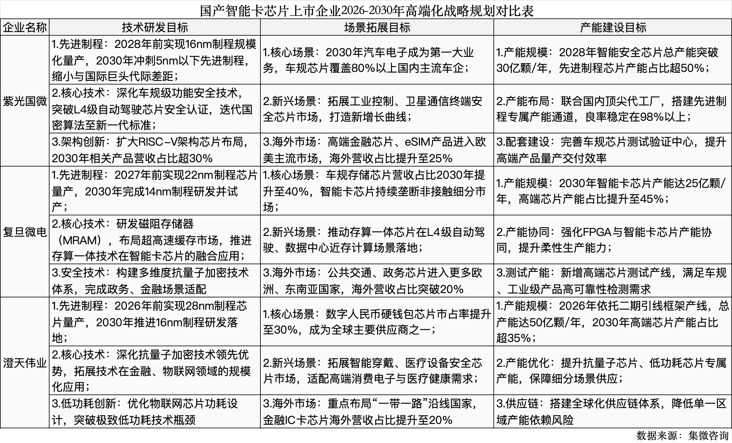 市场扩容双线并进,挖掘增量空间。国内市场方面,上市企业重点向车规级、工业物联网、数字身份等高端场景渗透,紫光国微的第二代汽车域控芯片已导入多家Tier1厂商,复旦微电的政务芯片持续扩大市场份额。海外市场方面,企业抓住“一带一路”机遇,重点布局东南亚、非洲等新兴市场,复旦微电的海外公共交通市场拓展提速,澄天伟业形成“国内为主、海外补充”的市场格局,目标将海外市场占比从当前不足10%提升至25%。