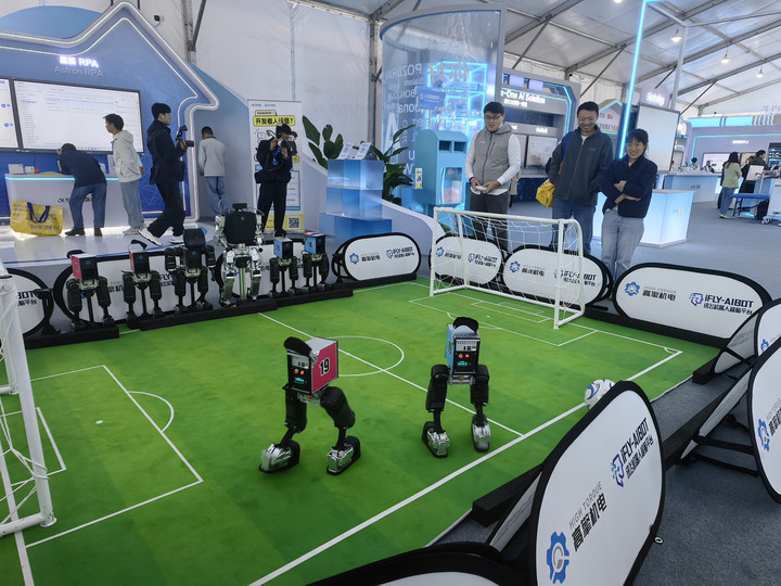 机器人在第八届世界声博会上进行足球比赛(11月3日摄)