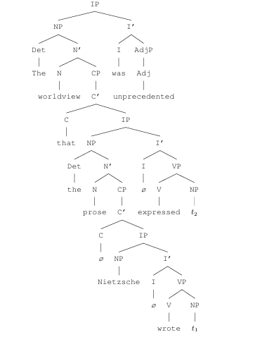 再往里一层:Nietzsche wrote(而这篇散文是「尼采写的」)。