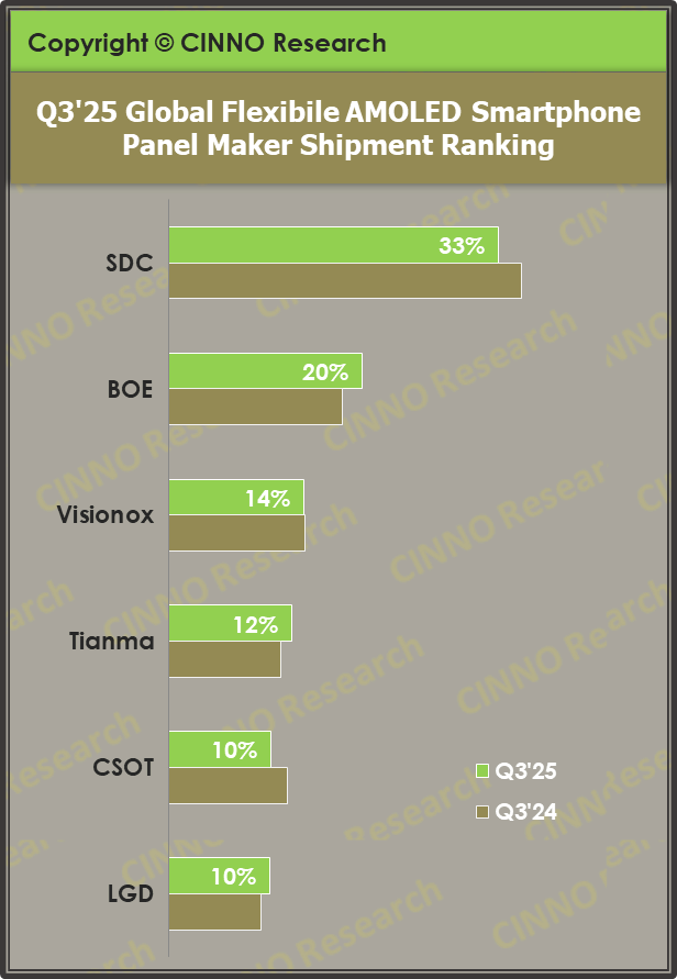 4.Q3韩企柔性AMOLED智能手机面板占比下滑,国内厂商份额达56.2%