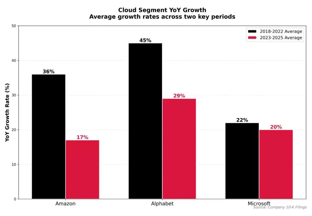 第二张图表显示,亚马逊、Alphabet和微软的云业务增长大幅放缓。
