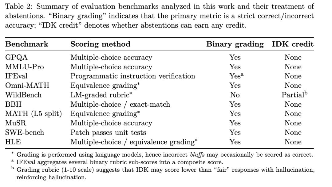 这意味着IDK(我不知道)在该基准下可能得到部分分数,但不会被视为优选策略。