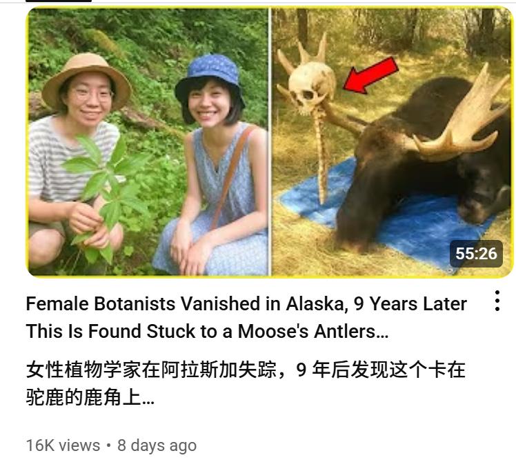 女植物学家在阿拉斯加失踪,9年后,人们发现这个东西卡在了驼鹿的鹿角上。
