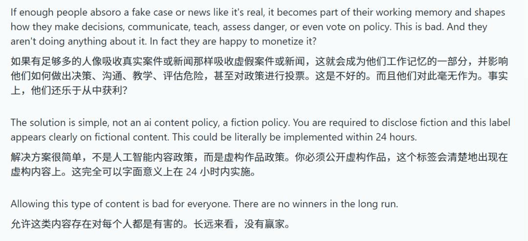 有网友义正词严地提出,允许这种内容泛滥,对每个人都没有好处。如果虚假新闻成为很多人记忆的一部分,就会给他们洗脑,甚至影响对政策进行投票。