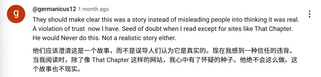 也有人非常在意故事的真假,希望开始就被清楚地告知——这只是一个编造故事,并不是真实。