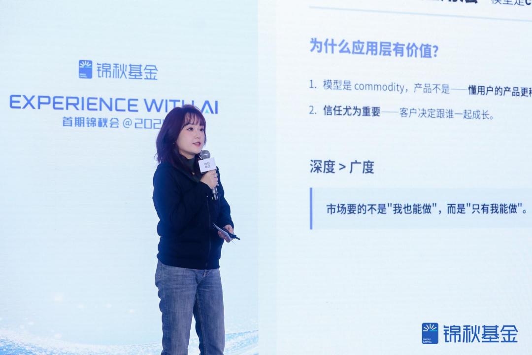 另外,在听完现场大会上多位锦秋基金被投创始人和被投基金投资人的分享后发现,在迅速翻涌的AI浪潮中,曾经伴随的诸多不确定性也已逐渐有了方向:AI的价值正从模型层决堤而出,汹涌地流向具体的产品、场景与解决方案。