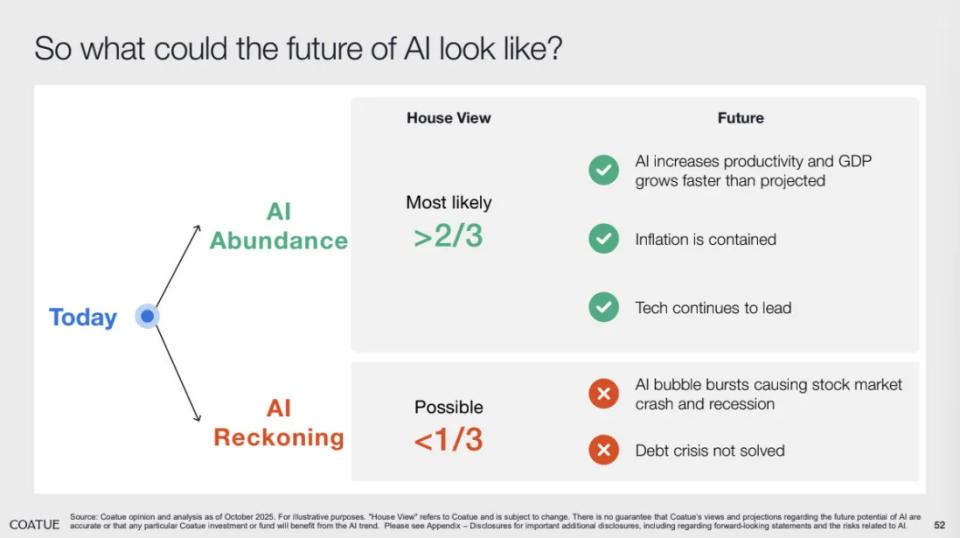 Coatue的判断毫无疑问押在前者,一个由AI驱动的高增长、高回报未来。
