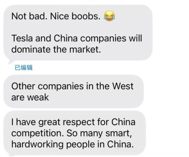 但在这件事上,曾一度对中国新能源汽车略显轻蔑的老马,态度突然一百八十度大转弯——