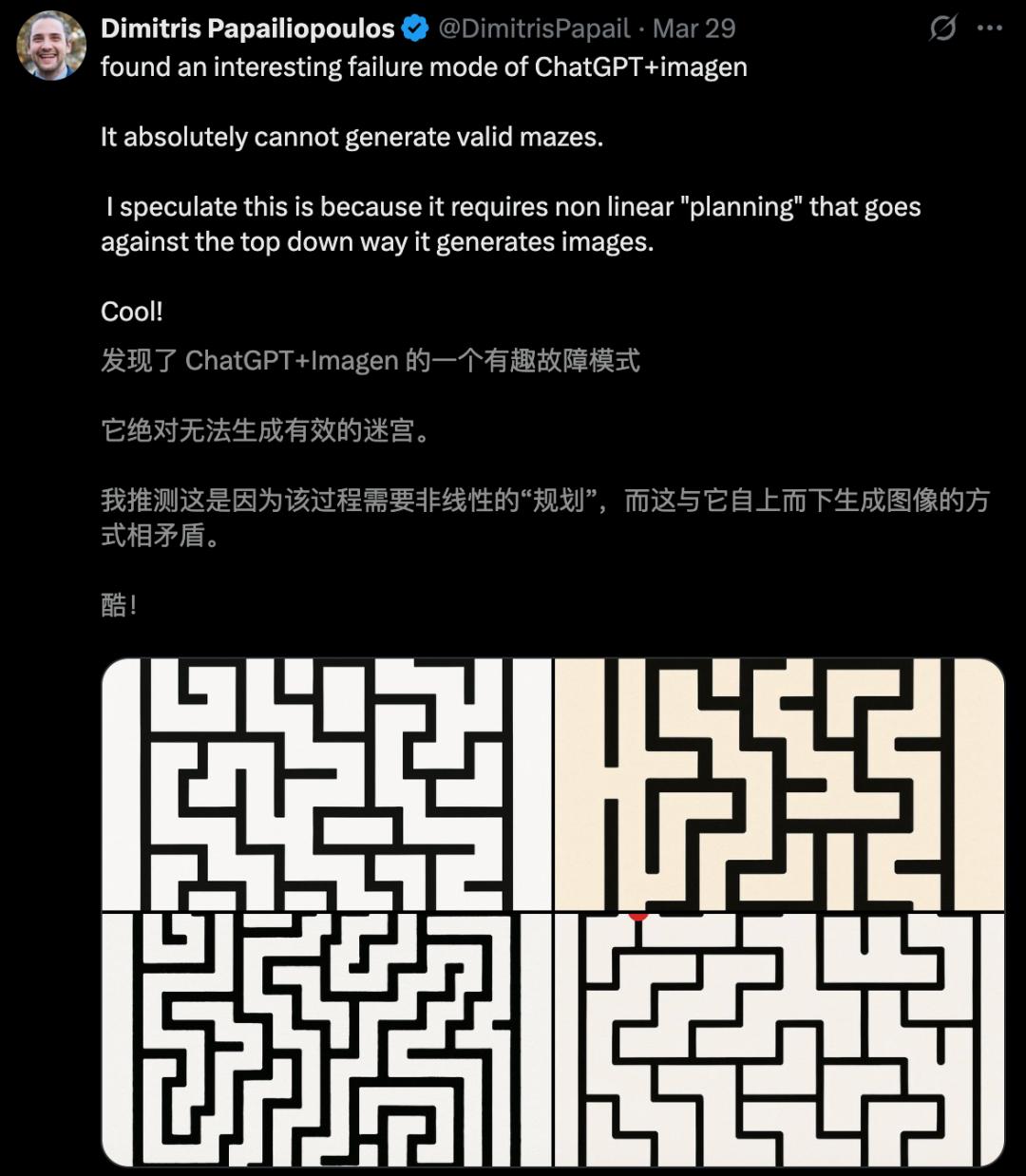 在估算距离、方向和尺寸,或通过从新角度生成图像来进行物体的「心理旋转」等任务上,最先进的MLLM模型的表现鲜有超过随机猜测的。它们无法走出迷宫、识别捷径或预测基本的物理现象。AI生成的视频——尽管初露锋芒,且的确酷炫——通常在几秒钟后便会失去连贯性。