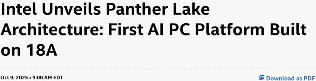 10月,英特尔曾宣布了1.8nm制程的AI芯片——Intel Core Ultra 3,预计年底出货。