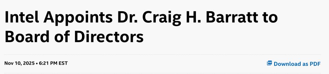 同在今天,英特尔还任命了Craig H. Barratt为董事会成员。