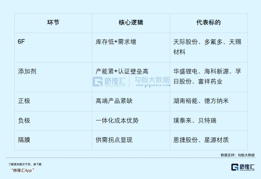 3.锂电材料:涨价弹性最大,重点代表公司如下表