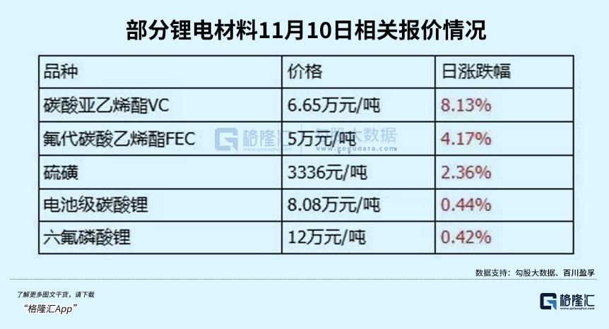 六氟磷酸锂因产能扩张停滞、头部企业协同控产,涨价确定性与持续性最强,当然近期涨势也是最强;