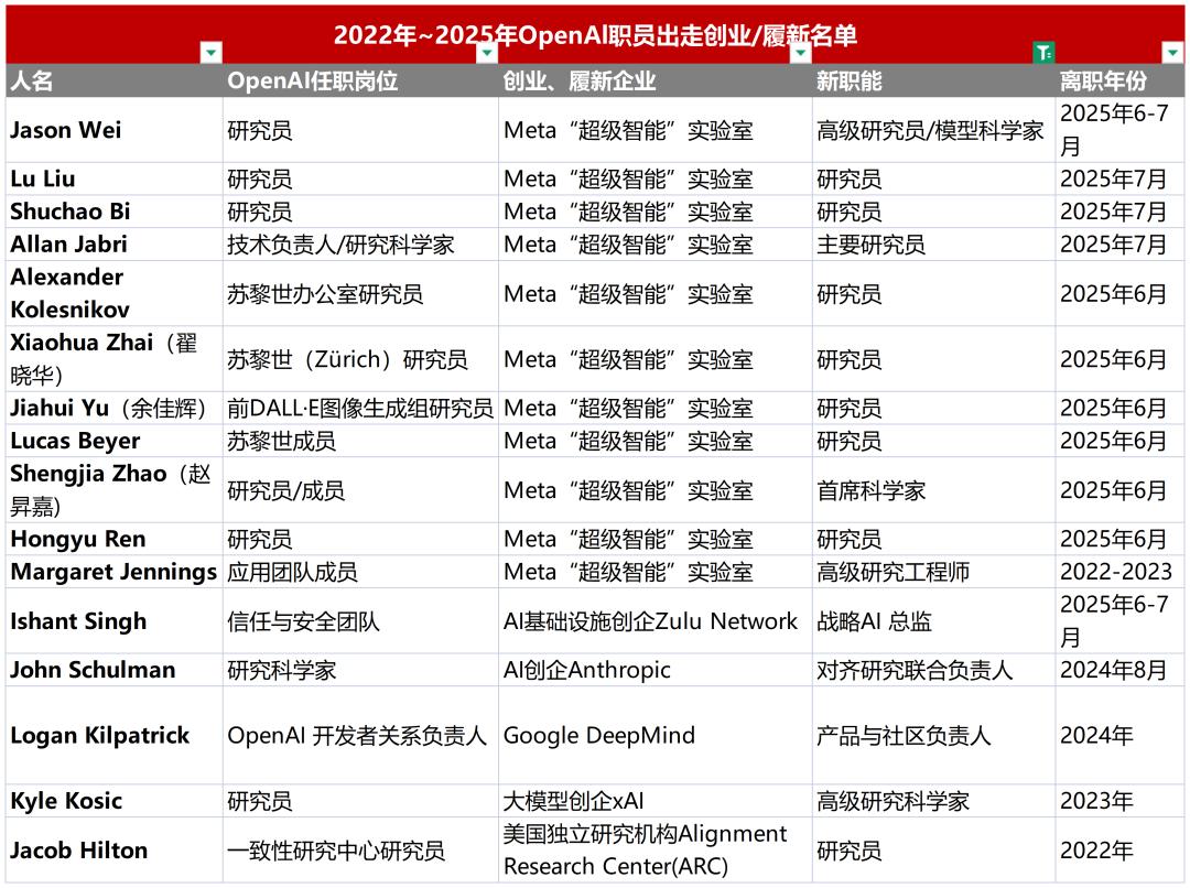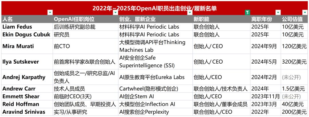 就像硅谷当年的“PayPal帮”一样,2022年至2025年间的OpenAI,也正在成为AI世界的“黄埔军校”。