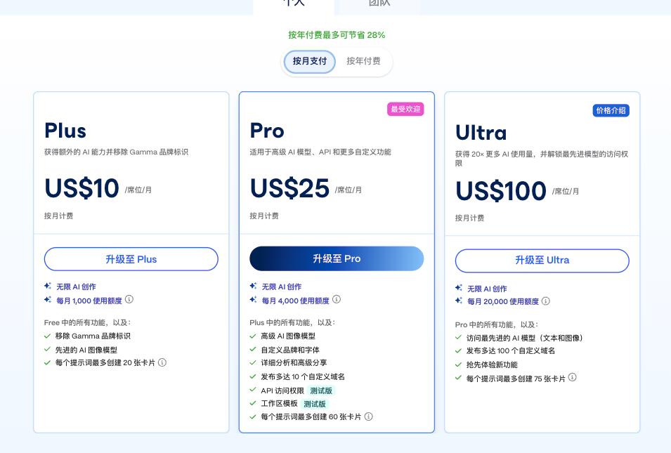 一位 Gamma 的长期付费用户表示,对她来说,Gamma 最大的特点有两个,一是输出内容的可视化做的比较好,她表示:“Gamma 把各种图表、数据排列、大的框架都安排得很好,配图能力也在持续优化。此外,它能够完全不修改用户上传的内容,完全尊重用户本意。二是多种形式的输入输出,输入方面它支持文字导入和在线文档输入,输出文档、网站、PPT、PDF 等多种内容形式,能够满足不同场景。