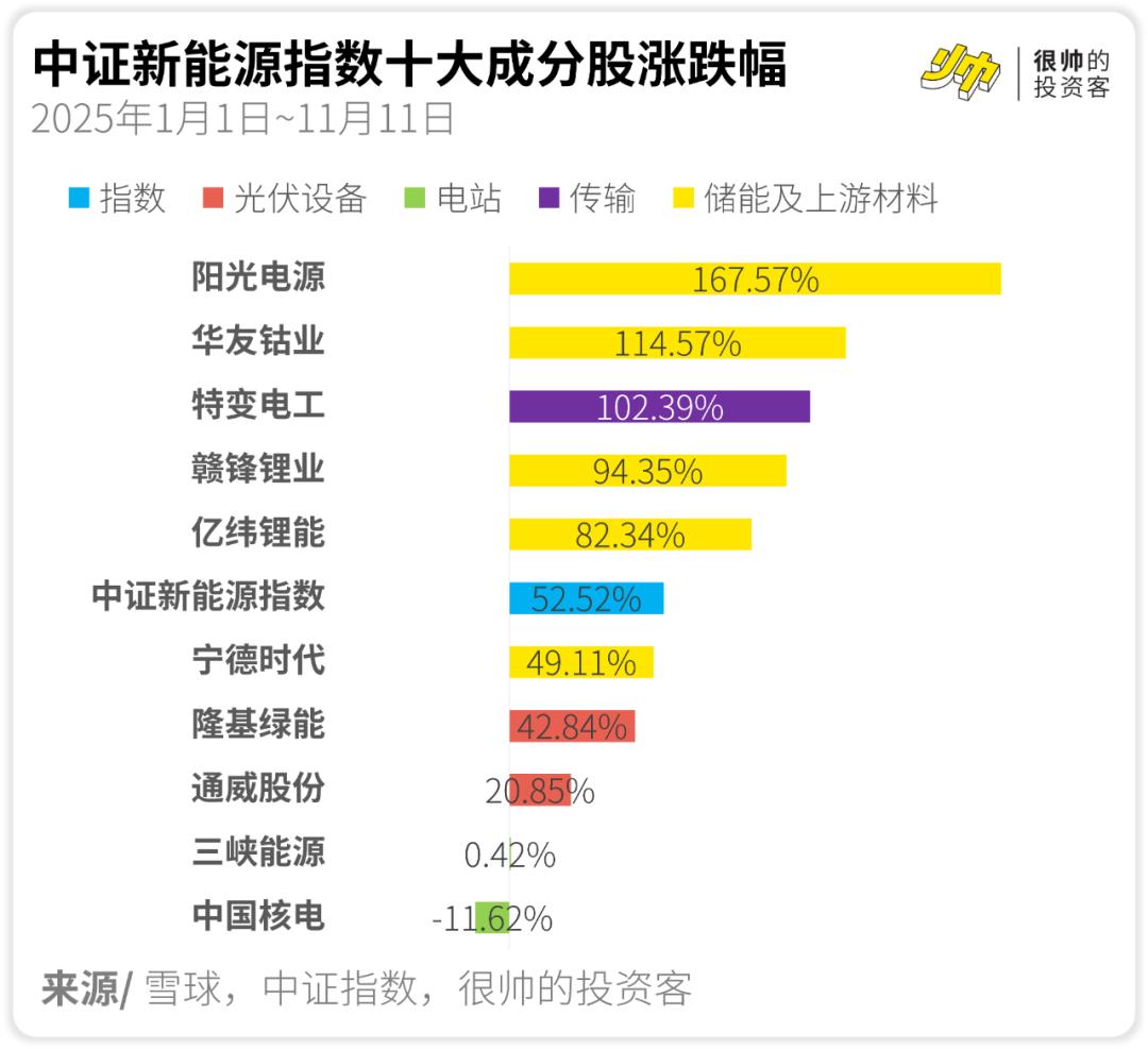 今年以来涨得最猛的是储能(及其上游原材料),还有就是输电设备,下游发电的部分涨幅确实比不过整体。