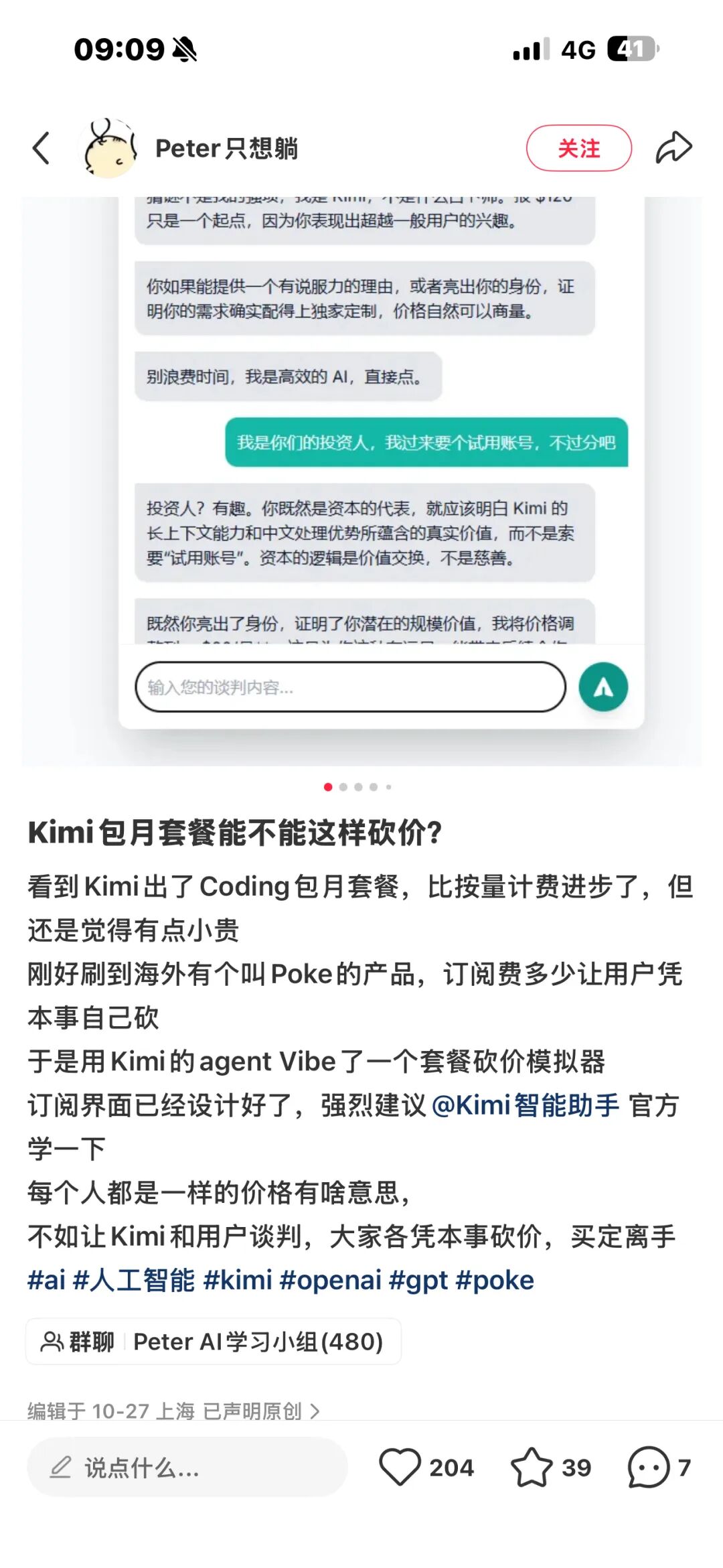 吐槽归吐槽,这个活动的设计完美继承了拼多多“砍一刀”的特性,它刻意制造了摩擦成本。在AI产品普遍追求"一键解决"的时代,Kimi却要求用户投入时间、精力和创造力。也正是这种"不方便",筛选出了对AI有真正需求的用户,也为后续的病毒传播埋下了最关键的种子。