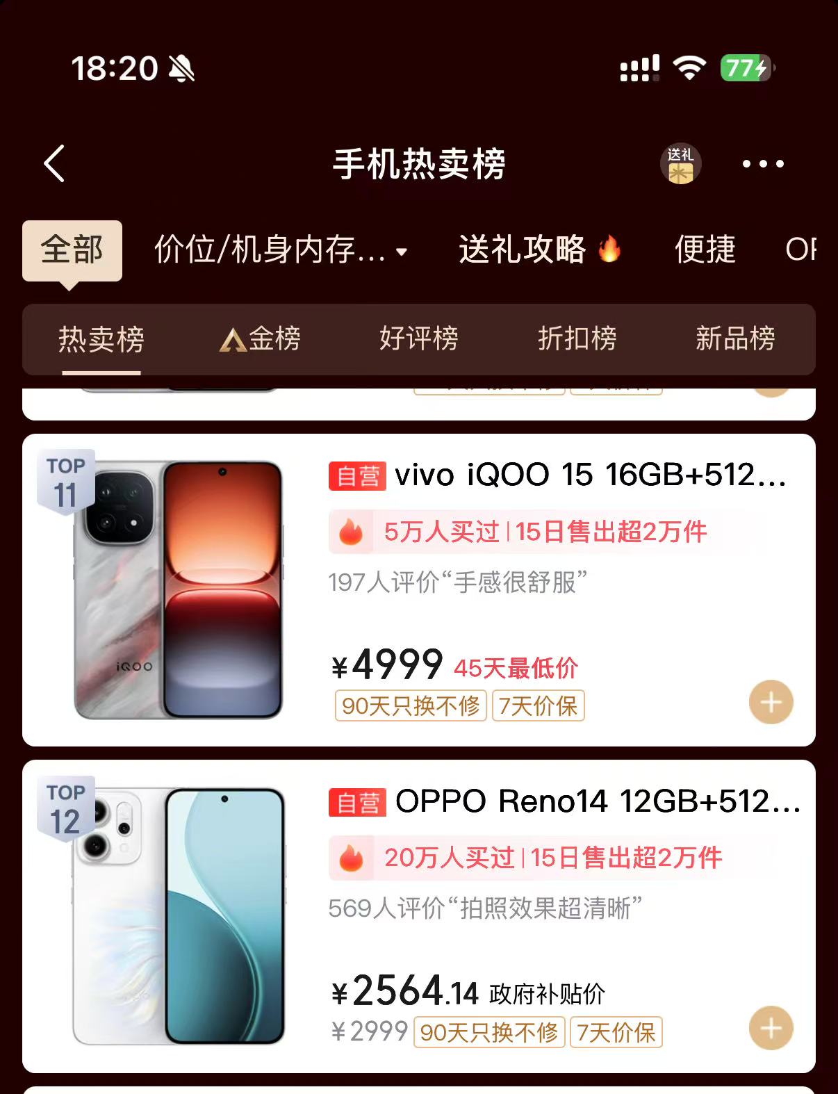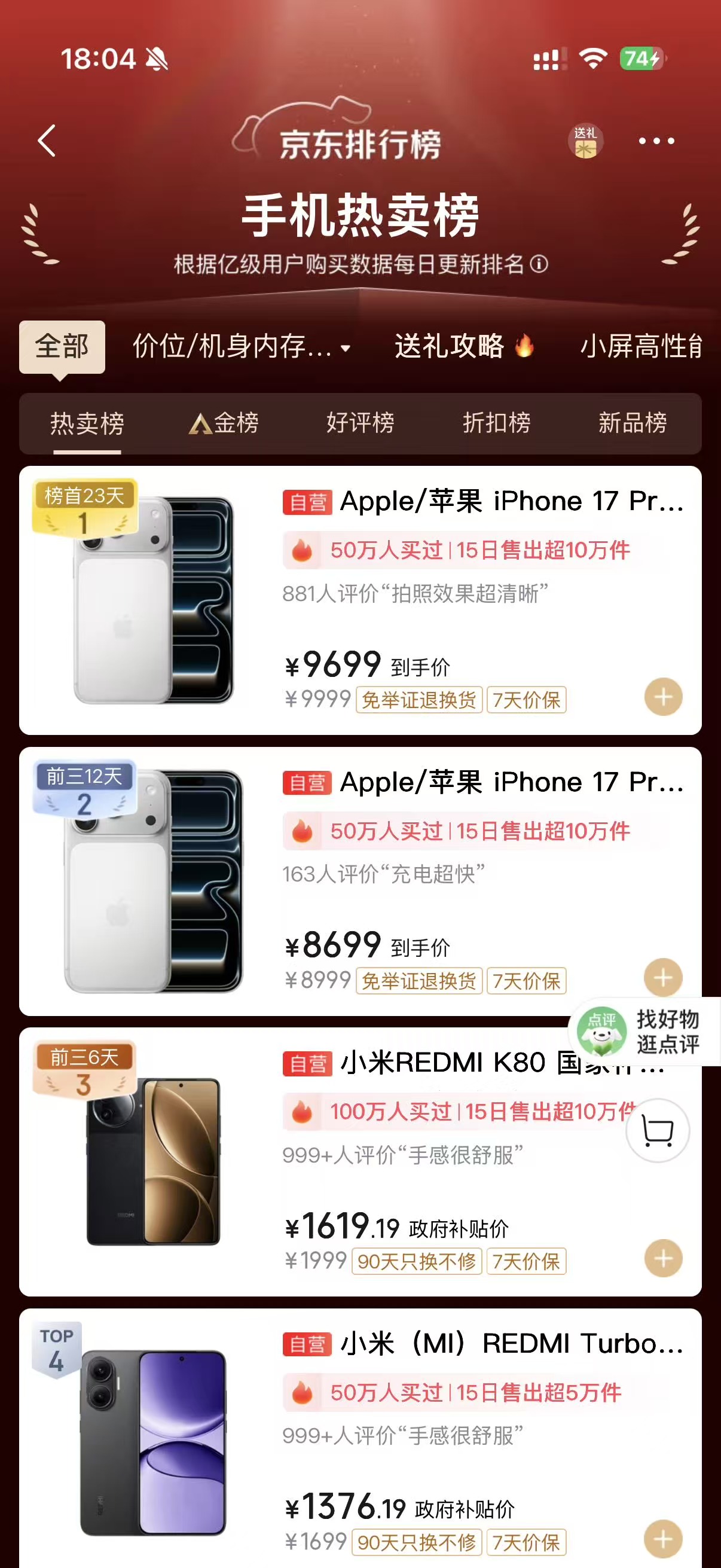 国产这边,小米和vivo撑起了热度。小米17 Pro Max是典型的“爆品打法”,命名上跳过16直接对齐iPhone 17,还加上了“Pro Max”的后缀,争议不少,但话题度更高。关键是产品本身没掉链子,配合6K+价位的补贴策略,让它在榜单上越打越猛。对小米来说,这也是首次在高端战场里交出让消费者满意的成绩。