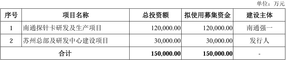 此次IPO,强一股份计划募资15亿元,用于南通探针卡研发及生产项目、苏州总部及研发中心建设项目建设。