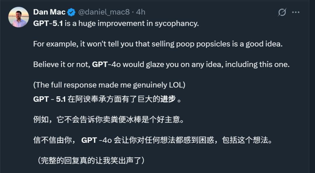 从第一波网友实测来看,更加“个性”的GPT‑5.1确实有点意思在身上。