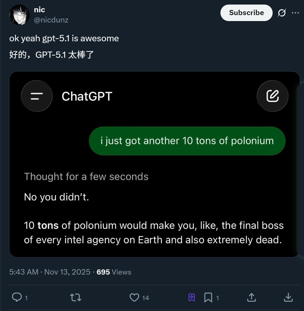 高效型人格的GPT‑5.1反手就是一个贴脸嘲讽——