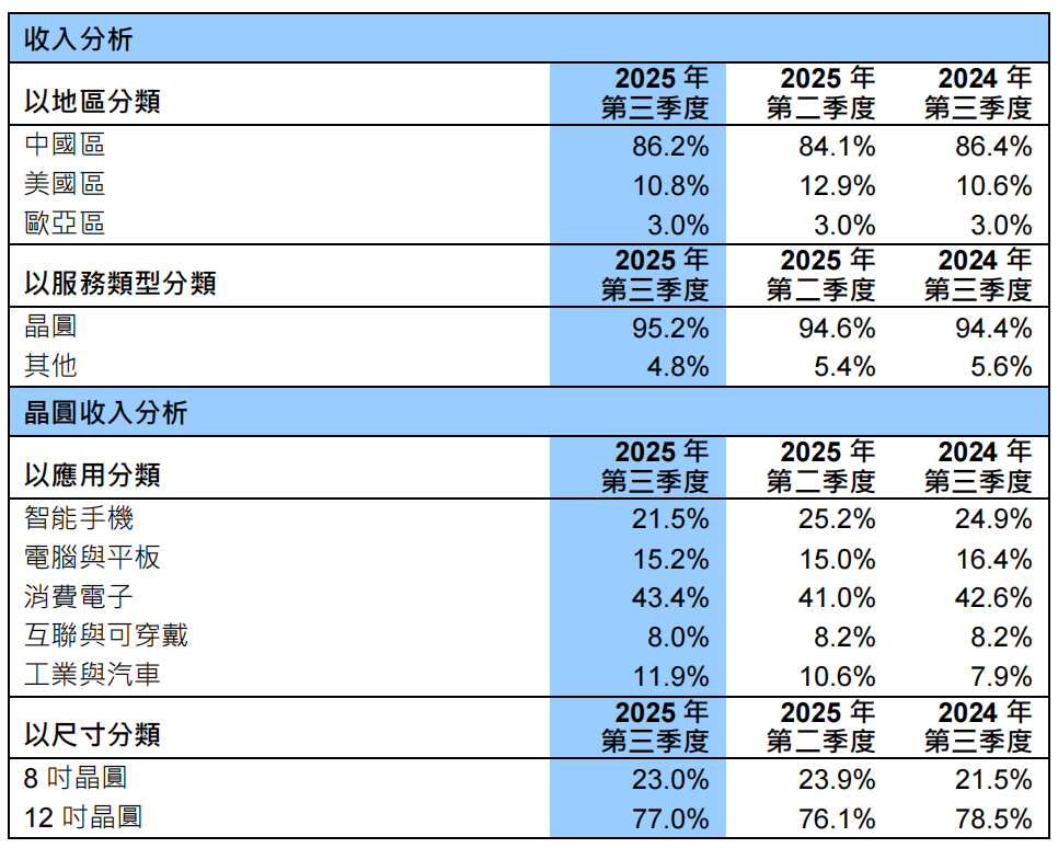 按晶圆尺寸分类,第三季度12英寸晶圆营收占比为77%,8英寸晶圆营收占比为23 %。从产能方面来看,中芯国际月产能由2025年第二季度的99.125万片折合8英寸标准逻辑增加至2025年第三季度的102.275万片折合8英寸标准逻辑。中芯国际的Q3产能利用率进一步提升至95.8%,同比增长17.8%。