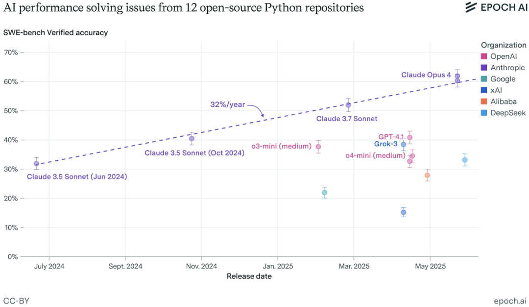 回想Claude 3.5约一年前发布时已是划时代突破,当时SWE-Bench基准测试通过率约30%,如今已达75%。