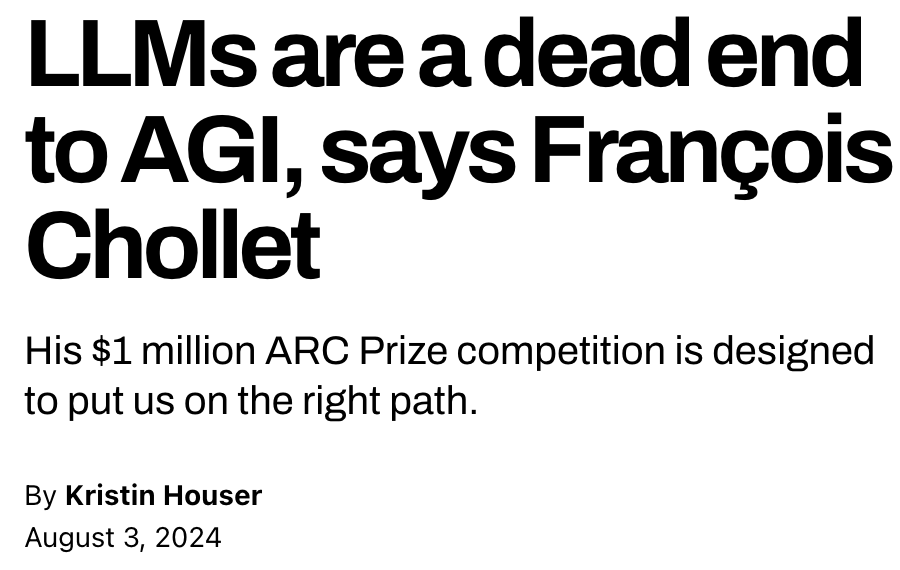 LLM是对AGI而言是断头路,所以他联合他人发起百万美元AI奖项ARC Prize,只为让大家重新回到通向AGI的正确道路。