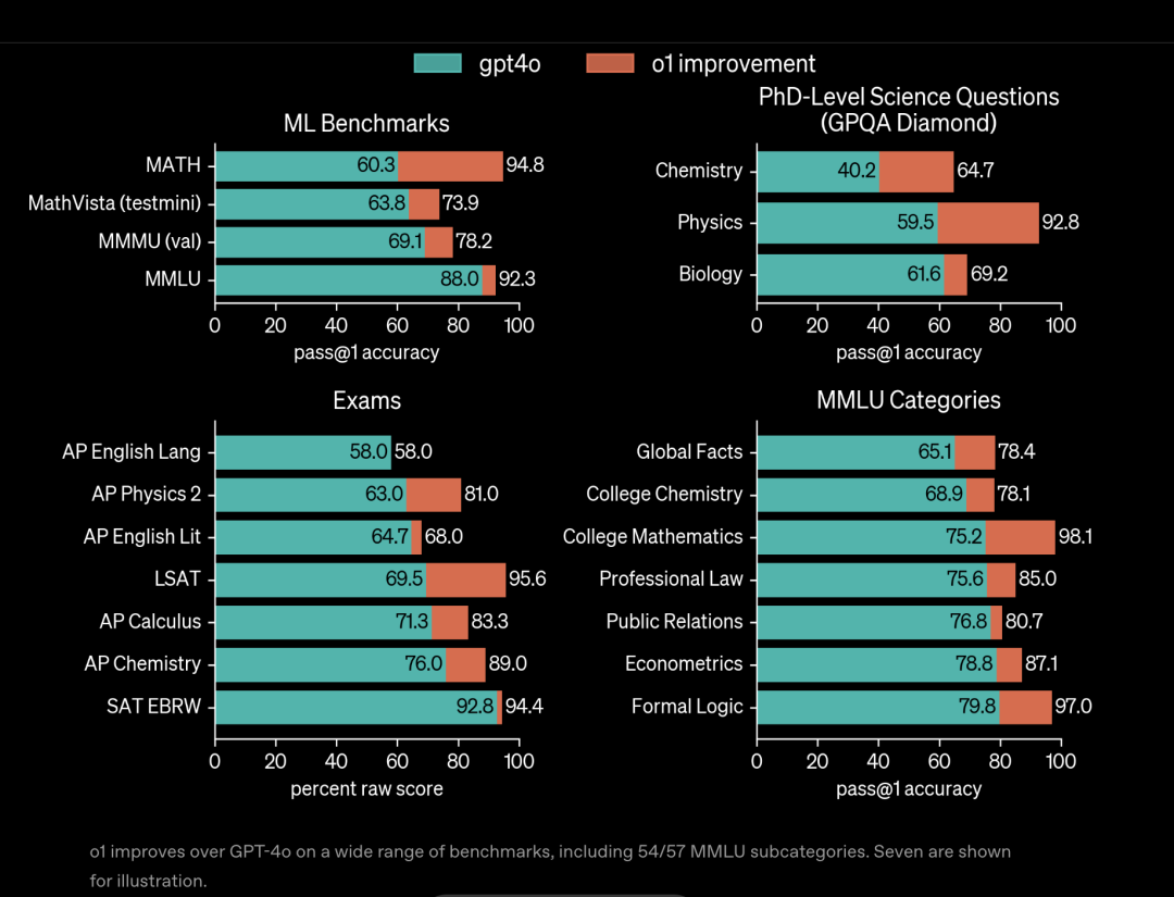 在绝大多数推理密集型任务中,OpenAI的首个推理模型o1显著优于当时最强的通用模型GPT-4o。
