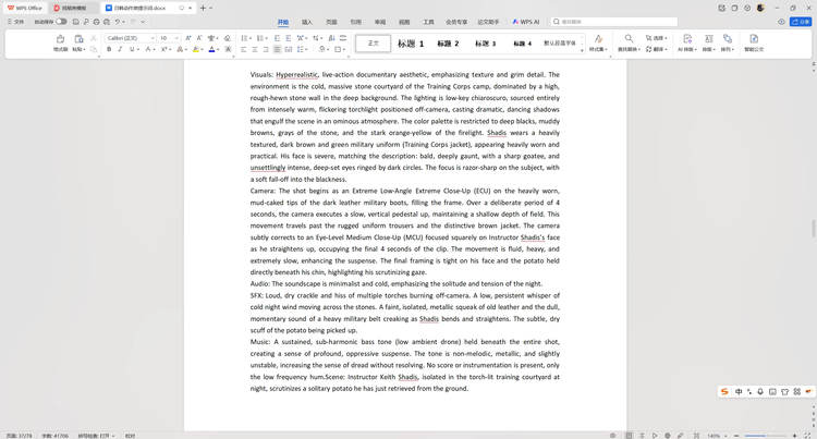 三文鱼,28岁,上学时学会计,后来做新媒体运营和编辑,再后来跨进AIGC领域。他是几个创作者里,自学AI最久的一个。也是个人创作者里,单部作品工程量最大的一个。一个镜头可以写满一页word文档,而这个镜头所在提示词文档有78页,四万多字。