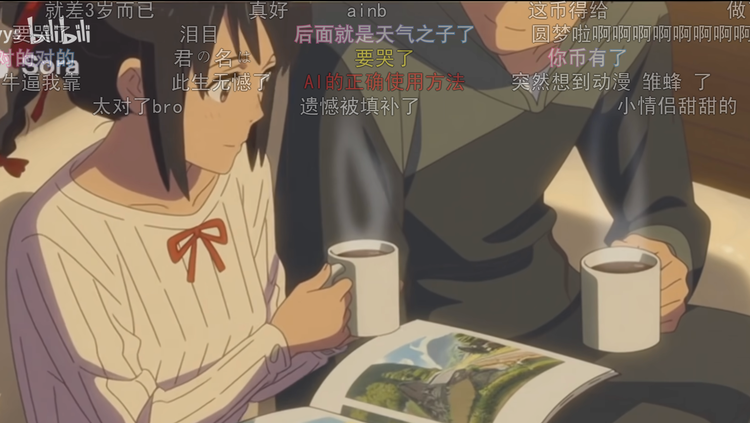 有的AI创作走了B站一贯流行的抽象、整活风格,让科比实现“赛博永生”。有的是温情续写,把《你的名字》这样留有遗憾的动画作品进行补完,给粉丝发糖。