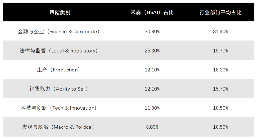 国内端,禾赛科技受主机厂长账期拖累现金流;海外端,合规风险、价格下滑风险与建厂带来的资金压力层层叠加。多重困境交织下,据Tip Ranks数据显示,禾赛科技Sponsored ADR(有保荐的美国存托凭证)最新盈利报告披露91项风险因素,其中“金融与企业”类别风险数量居首(30.8%)。