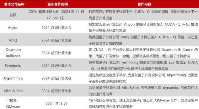英伟达量子计算领域的合作,来源:民生证券