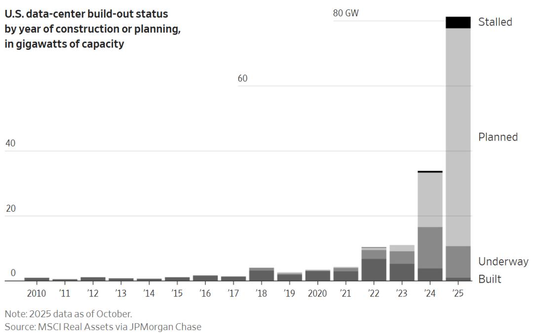 于是,纸面上的AI数据中心规划图已经堆积如山,创下历史新高。