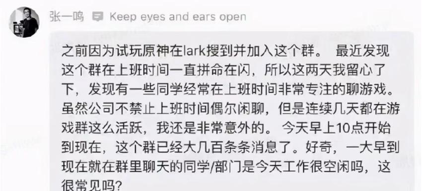 至少现在,字节跳动CEO张一鸣,大概不会再批评员工上班摸鱼玩《原神》了吧……