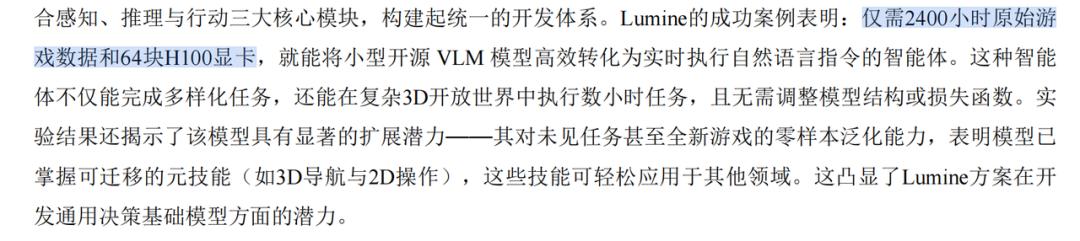 首先是通用性。跟上述依赖游戏内部封闭数据的专属AI智能体相比,Lumine的技术路线和特性有些不同: