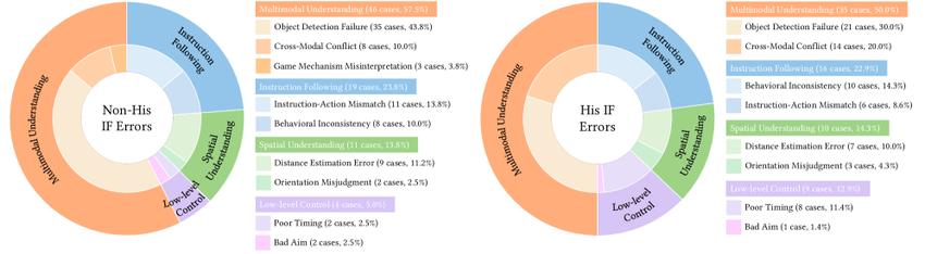 此外,目前Lumine仍存在不少缺陷。论文指出,最显著的问题是多模态理解能力不足,约占全部问题的50%,表现为AI无法从场景中正确识别目标;